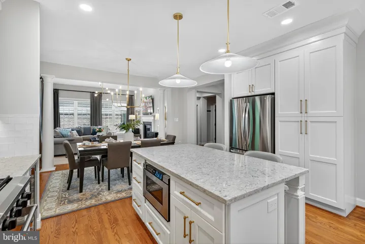 The heart of the home is the recently upgraded gourmet kitchen, featuring quartz countertops, top-of-the-line stainless steel appliances, ceiling-height cabinetry, and a spacious island — perfect for both everyday living and entertaining. The kitchen opens directly into the cozy family room, creating a warm, connected space ideal for gathering and relaxation. French doors off the main level lead to a screened-in porch, offering seamless indoor-outdoor flow.