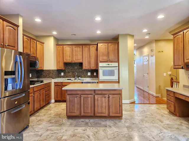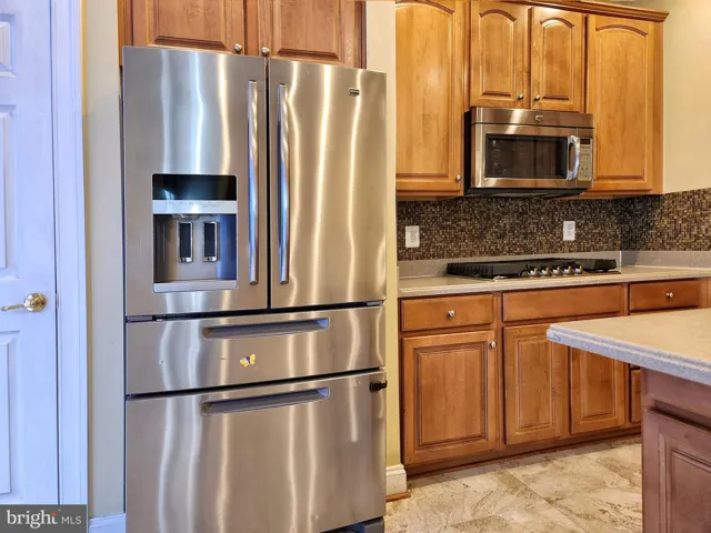 The gourmet kitchen is a chef’s delight, featuring a stylish new backsplash, updated range hood (vented to the outside), and a sleek cooktop—perfect for preparing meals in both comfort and style.