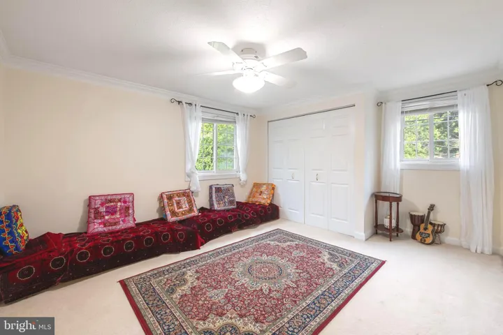Upstairs, the generous primary suite includes a large walk-in closet and a private en-suite bathroom. Three additional bedrooms, each with ample closet space, share a well-appointed second full bathroom.