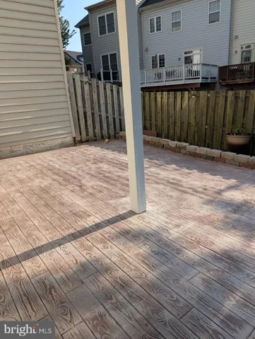 Access to a fenced backyard with concrete patio and retaining wall—great for gardening or outdoor lounging
