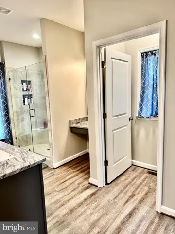 Inside, you’ll find three spacious bedrooms and two full baths, including a luxurious primary suite with a spa-like bathroom featuring a massive marble-topped double vanity, walk-in tile shower, and a separate makeup station. The walk-in closet is equally generous—plenty of room for everything.