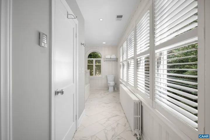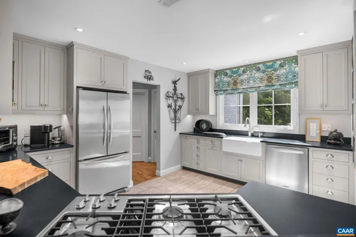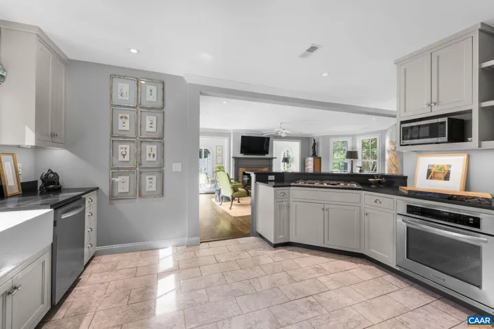 Enchanting setting overlooking expansive lush landscapes in Downtown Charlottesville. Discover the ease of single-level living just minutes from Charlottesville?s Historic Downtown Mall. Enjoy easy access to boutique shopping, fine dining, live music, the Paramount Theater and Ting Pavilion. Taken down to the studs and completely reimagined, this residence features a reconfigured open floor plan, custom designer finishes throughout and radiant floor heating in the kitchen, sunroom and baths. The great room centers around a wood-burning fireplace with gas logs and flows seamlessly to light-filled spaces and a sun-drenched porch. A private primary suite offers a spa-like retreat with a jetted soaking tub and elegant marble tile finishes. The guest bath includes a steam shower, perfect for relaxation. Every detail has been curated from a standing seam metal roof and Ipe deck to a stone terrace and lush, professional landscaping. Thoughtful additions include new and expanded windows offering abundant natural light. Set in one of Downtown?s most desirable locations, this private, meticulously renovated home is a rare urban sanctuary with generous outdoor living rarely found in the city.,Granite Counter,Wood Cabinets,Fireplace in Great Room