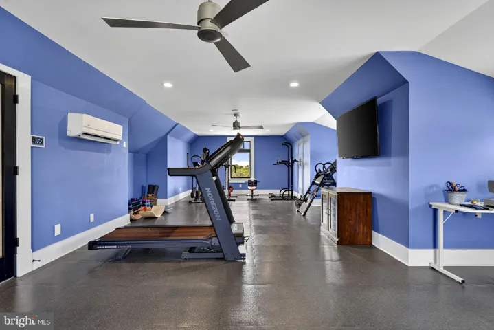 Upstairs, two bedrooms share a Jack-and-Jill bath, and a third is ensuite. A large bonus room leads to the second laundry room and gym with rubber sports flooring. In 2022, the lower level was enhanced with a kitchenette, creating a bright, versatile space with 9-foot ceilings, walk-out glass doors, an ensuite bedroom, and a living room with gas fireplace—ideal for guests or extended family.