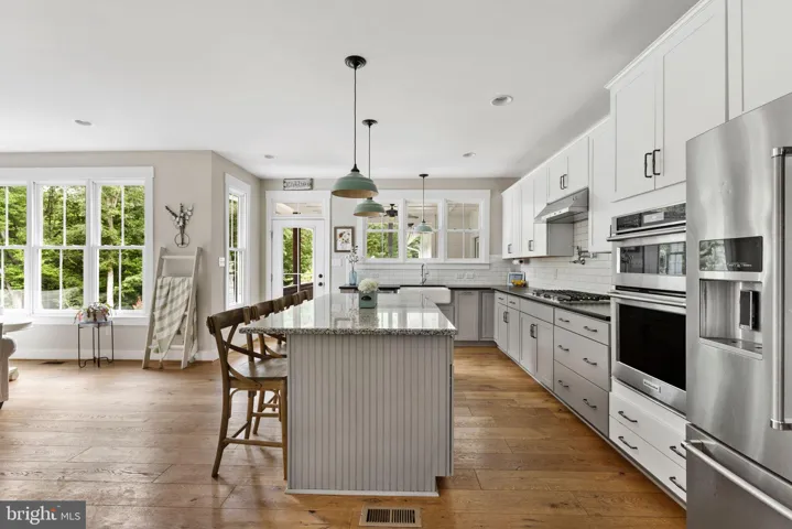 **Square footage 5347** see attached appraisal.** Enjoy the charm of country living in this craftsman-style farmhouse set on just over an acre. A wide front porch provides the perfect spot to relax and take in peaceful views of the surrounding pasture. Inside, the two-story foyer welcomes you with natural light and an open feel. Hardwood floors flow throughout the main level, adding warmth and character. The family room connects seamlessly to the spacious kitchen, complete with an oversized island ideal for gathering. Large windows along the back of the home overlook the pool, backyard, and protected 50 acres of land that is located behind the property, creating a beautiful backdrop for everyday living. A dining room, laundry area, and half bath are also located on the first floor, along with a private owner’s suite featuring a full bath. The second level offers four generously sized bedrooms, each with walk-in closets, as well as a large bonus room over the garage. Two additional baths, including a Jack-and-Jill and a second ensuite, complete this floor. A covered rear porch leads to a private in-law/au-pair suite with its own kitchen, living room, bedroom, and full bath. Other features include a low-maintenance exterior, in-ground pool, three-car attached garage, oversized detached garage, and a whole-house generator.