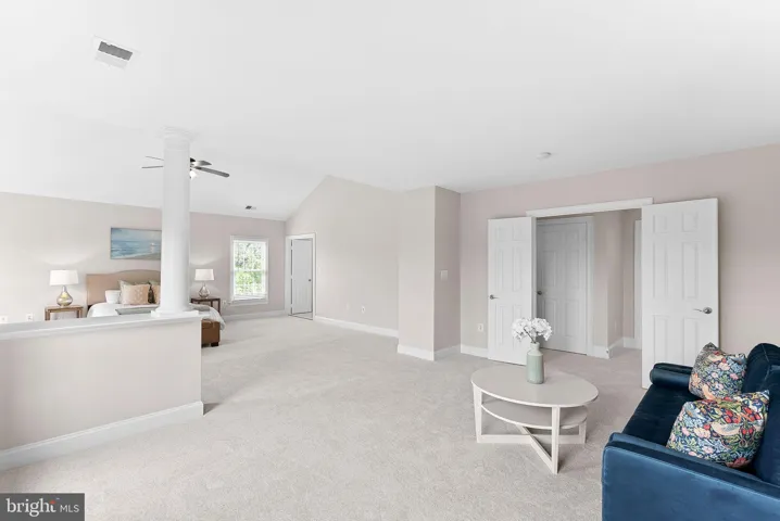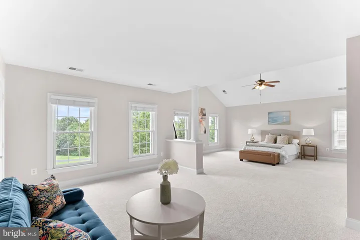 The Primary Suite is a true retreat with vaulted ceilings, a sitting area, and a spa-inspired bath featuring dual vanities, soaking tub & separate shower.