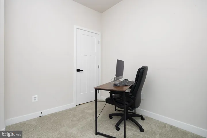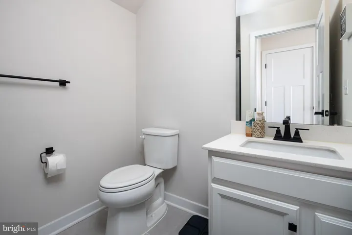 The gourmet kitchen is a chef’s dream, featuring stainless steel appliances, quartz countertops, a spacious center island, and room for a large dining table. A conveniently located powder room on this level makes entertaining a breeze.
