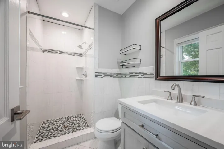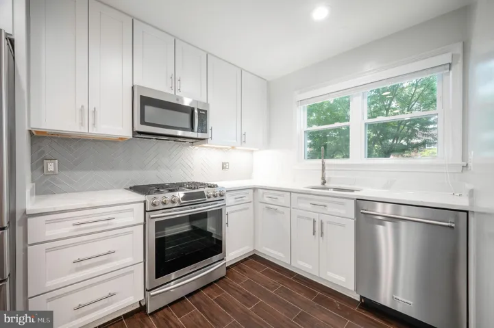 Completely renovated kitchen and hall bath (2018) with modern appliances, upgraded cabinetry, and ceramic flooring. Two fireplaces, including a stunning marble surround. Gleaming hardwood floors on both the main and upper levels. Fresh paint and updated bathrooms ELFA closet systems installed in bedroom and main-level closets, plus new closet doors throughout.