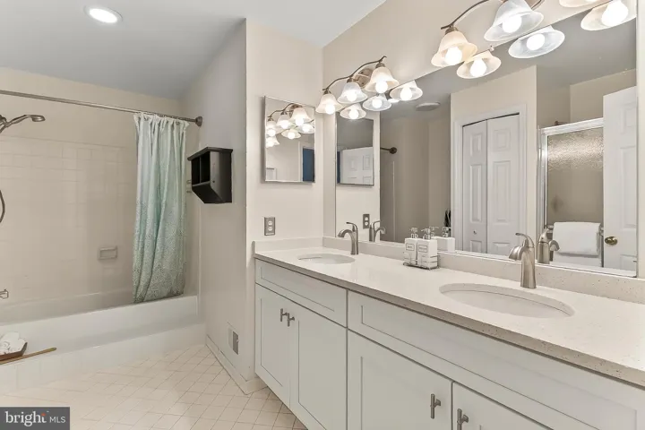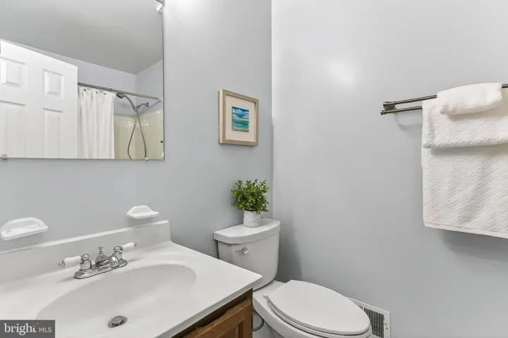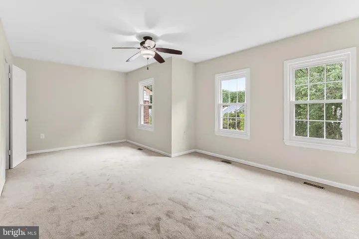 The upper levels feature a large primary bedroom with a walk-in closet and a primary bath with a separate tub and shower. The second and third bedrooms are generously sized, accommodating multitude of uses.