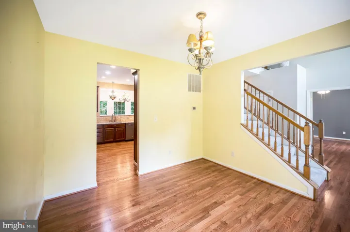 As you step inside, gleaming resurfaced hardwood floors catch your eye, leading you through the elegant main level. To the right, a sun-filled office with oversized windows provides the perfect work-from-home space, while the left opens to a formal dining room ready for gatherings. A conveniently located half bath accommodates guests with ease.