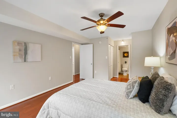 Enjoy quiet, convenient top-floor living in the heart of Reston! This home is perfectly situated near scenic trails and bus routes, with easy access to Wiehle Metro, the Toll Road, South Lakes Shopping Center, Reston Town Center, Lake Thoreau, and Reston Golf Course. The living room features vaulted ceilings and a stunning wall of windows offering peaceful views of trees, and a private balcony. The bright, spacious kitchen includes a built-in pantry, perfect for extra storage. A separate dining room with wood flooring is an ideal spot for relaxing or entertaining. The primary bedroom is a true retreat, featuring two large closets and a beautifully renovated ensuite bath with walk-in shower. There is a big window and walk through closet as well as a ceiling fan and wood floors. A generously sized second bedroom provides additional comfort and flexibility with a large window and ceiling fan. The in-unit full-size washer and dryer add extra convenience. This home comes with an assigned parking space, plus an additional unassigned space for guests or a second vehicle. With its central location and thoughtful updates, this home offers the best of Reston living!
