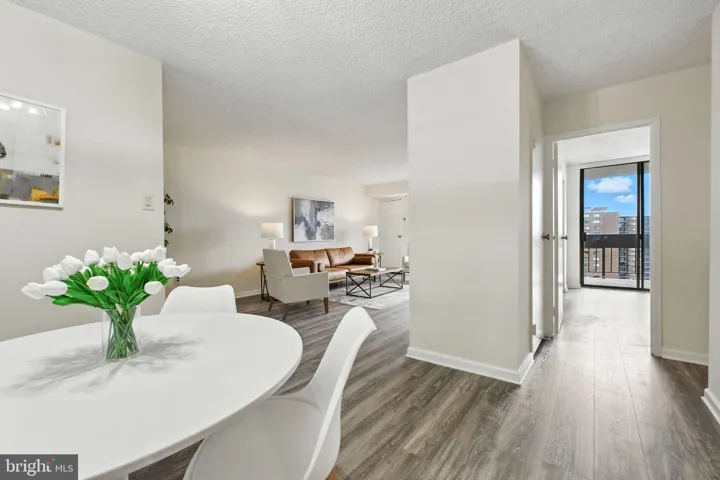 Welcome to The Greenhouse, where convenience meets comfort in a vibrant, pet-friendly community. This 12th-floor, 815 sq ft condo features an open-plan layout with a combined dining and living room, and an updated kitchen with newer stainless steel appliances. The main living spaces showcase new gray LVP flooring. The bedroom includes dual closets and the bathroom offers a shower/tub combo, while a large private balcony provides serene views over greenspace. Additional perks include an in-unit washer and dryer and a reserved garage parking space for added convenience.