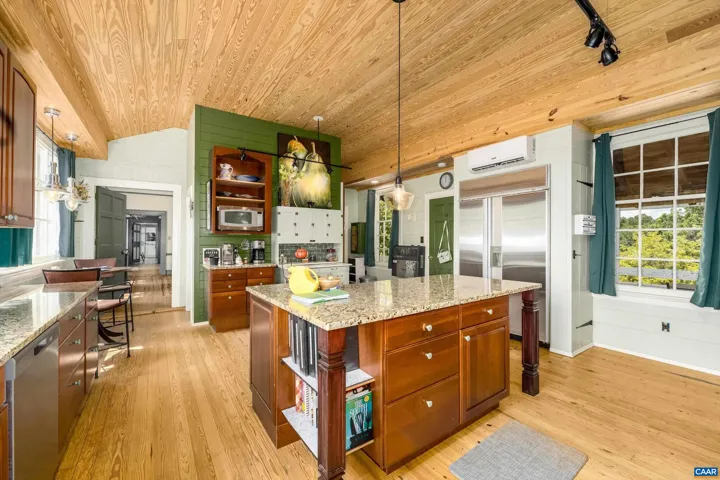 Perched just perfectly on a hill overlooking the Nelson County valley is Bon Aire, circa 1798, listed in the National Register of Historic Places & the Virginia Landmarks Register. Built by Dr. George Cabell, Jr., this property embodies a combination of Federal style, Jeffersonian influence and heritage. The county states there are (8) division rights. This distinctive hilltop estate offers 4 spacious bedrooms, 2.5 baths, 10-14 ft ceilings, hardwood floors, synthetic slate roof, gourmet kitchen, and 7 wood-burning fireplaces. The English basement has a separate guest suite currently used as an Airbnb, ?The Sunflower Room?, with private entrance, kitchenette, full bath, and bedroom. The 43-acre property has a fully updated 3-bed, 1 bath guest cottage with whole-house generator, a barn, and multiple outbuildings. The main house and the guest cottage have been thoughtfully restored while maintaining the historical integrity. There are graceful arches, recessed panels, Chippendale-style portico railings, and a staircase tucked within a side arch to the 2nd floor. The features are a design hallmark linked to Thomas Jefferson and his associates. Bonus! – $100,000 of farm equipment included with a full price offer.,Cherry Cabinets,Granite Counter,Fireplace in Bedroom,Fireplace in Dining Room,Fireplace in Living Room,Fireplace in Master Bedroom