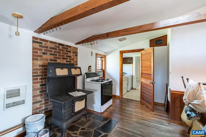 This is a 1912, historic Alberene Soapstone company-built home for their bachelors to rest their heads after a long day. It is a 1,230 sqft, 3 bedrooms, 1 bath home on 2 acres with multiple out buildings that has been added onto over the years. The 2-car garage (24 x 21) was used to restore 2 Steaua Bagos over the years. In addition, there is a 14.5 x 10.5 motorcycle�shop, 11.5 x 10.5 run in shed, 9 X 10.5 shed, and kennel. The Rockfish River is close enough to hear at night. Scottsville features nearby grocery, restaurants, brewery, and entertainment. Don’t forget the nearby Nelson wineries, breweries, Wintergreen resort, The Quarry Gardens, Walton Mountain Museum, hiking, swimming, boating, and fishing. Take this home to its next level!,Fireplace in Living Room