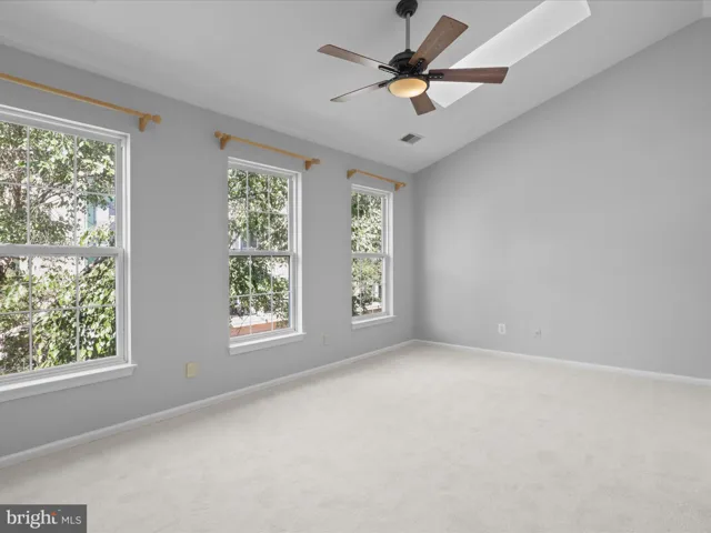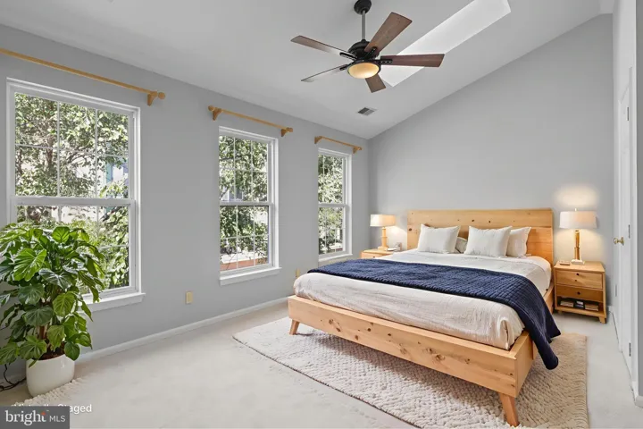 Stunning 4-Level Townhome in Sought-After Cameron Station! 3-bedrooms 2.5-bathrooms with 1 car attached garage. The main level features a bright open-concept floor plan with a large living and dining area, ideal for entertaining or relaxing at home. The gourmet kitchen is a chef’s dream; complete with granite countertops, stainless steel appliances, and an oversized center island that provides ample seating and prep space. Just off the kitchen, enjoy your morning coffee or evening gatherings on the private deck, bathed in sunlight. Upstairs, you’ll find two spacious bedrooms and a full bath on the third level, while the top floor is dedicated entirely to the luxurious primary suite. This serene retreat includes vaulted ceilings, skylights, a large walk-in closet, and a spa-inspired ensuite bath with dual vanities, a soaking tub, and separate shower. The lower level offers a versatile recreation room with hardwood floors and access to a private patio. Freshly painted and new carpets.