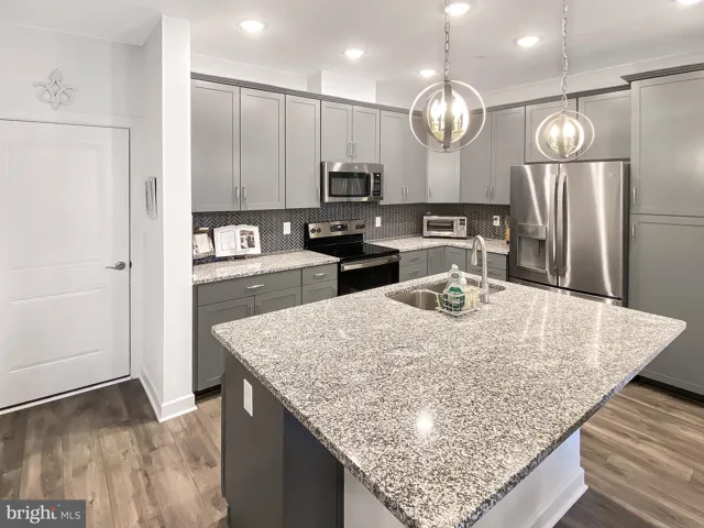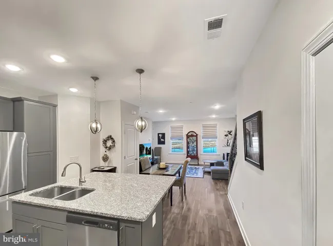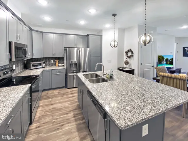 With over 1,620 sq ft of thoughtfully designed living space, this home greets you with an open-concept layout filled with natural light. Luxury vinyl plank floors flow seamlessly through the main level, leading to a gourmet kitchen with stainless steel appliances, granite countertops, stylish backsplash, and a spacious island—perfect for casual meals or entertaining. The cozy family room, featuring two large windows overlooking a pond, flows into the dining area, ideal for hosting memorable gatherings.