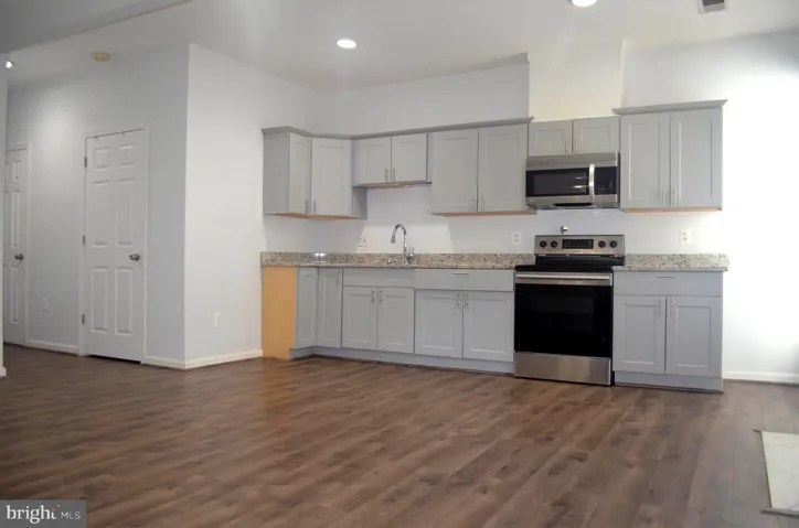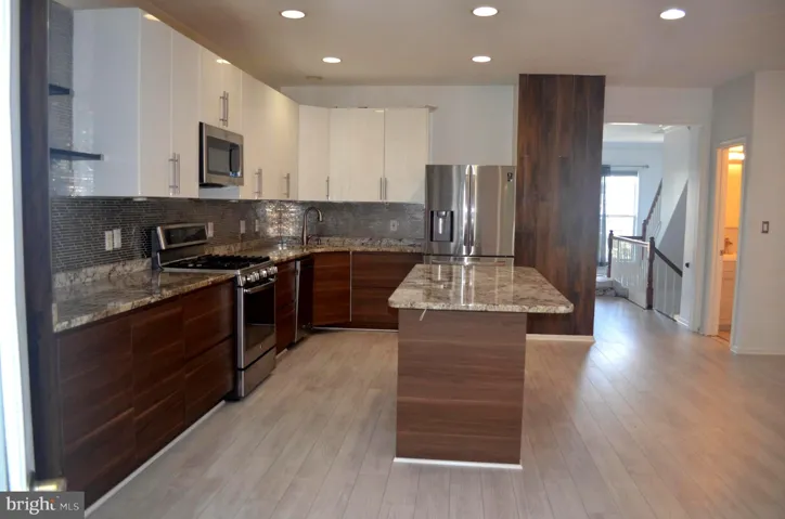 Step inside to a welcoming foyer with ceramic tile flooring, leading to a bright recreation room and a beautifully renovated first-floor shower. The heart of the home features a newly renovated kitchen with a stunning full-wall backsplash, a spacious center island perfect for family gatherings, and luxury hardwood flooring that flows seamlessly through the main and upper levels. Elegant two-tone wood stairs add a stylish touch. The spacious master suite boasts vaulted ceilings, a walk-in closet, and a dual-sink vanity. Enjoy outdoor living with a private deck and shaded patio—ideal for relaxing or entertaining.