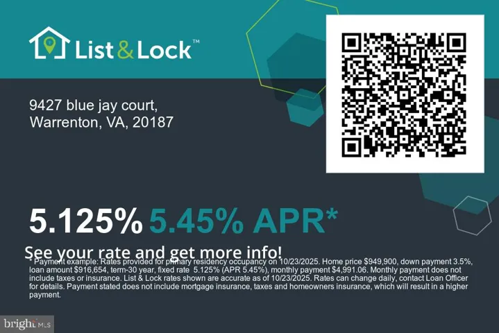 **This house comes with a REDUCED RATE as low as 5.125% (APR 5.45%) as of 10/23/2025 through List & Lock™. This is a seller paid rate-buydown that reduces the buyer’s interest rate and monthly payment. Terms apply, see disclosures for more information.**Stunning 4500 Sq Ft Craftsman Colonial Built in 2023 Located in the Heart of Warrenton**Wonderful Amenity-Filled Warrenton Chase Subdivision w/ a Low HOA Fee. Welcome to this 6 Bedroom/5 Bath home that is situated on a large .67 acre cul-de-sac lot that backs to woods. The home features beautiful stone & siding, an inviting large front porch, 2-car sideload garage and on-grid Solar Panels to save on utility bills. Solar panels will be paid off by the Sellers and owned free & clear for the new Purchaser. Seller Hasn’t had a Utility Bill since April (Summer Months), only a service fee/tax of $8.98 per month. Buyer can sign-up to Receive ($) Renewable Energy Credits. The main level offers an open floor plan, 9 ft. ceilings, a gourmet kitchen w/ island, pendant lights, custom 42″ cabinets, soft-close drawers, quartz counters, tile backsplash, stainless steel appliances, pantry, breakfast bar, dining area and a huge family room. There is a huge library w/ french doors that could be used as a formal living or dining room. There is a main level bedroom w/ attached full bath for guests/in-law suite that could be used as a library. There are luxury vinyl plank floors on the main and upper levels and recessed lights throughout. The upper level boasts an Owners Suite w/ tray ceiling, a large walk-in closet and sumptuous Owners Bath featuring two sinks, water closet and an oversized shower offering dual shower heads & seamless glass. There is a loft, 3 more generously sized bedrooms, 2 full baths and a laundry room on the upper level. Expand in the fully finished basement that offers plenty of space to entertain, a 6th bedroom, full bath and plumbing rough-in for future kitchen/wetbar. Additional options include LVP wood floor stairwell, tilt windows and 75-gallon hot water heater. Remainder of 10-yr Builder Structural Warranty transfers to new homeowner. Warrenton Chase is a wonderful subdivision of homes on larger lots located just mins to downtown, restaurants, shops, dog park, Rady Park, the Warf, etc. The list of amenities includes a community pool, kiddie pool, playground, tennis courts, jog/walk path. Commuter parking lot is 3 miles away. A Must See!