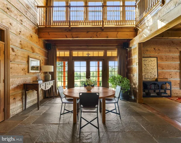 Sited on a gentle rise among pastures and ponds, wrapped in mountain views, this custom circa 2000 white pine log home of 5,750 sq. ft. stands apart in quality but was designed to complement the land, using nature’s materials- pine, cedar, cherry, maple, walnut, copper, granite, stone, and slate. The guest cabins, with the same level of detail and richness, affording 4 total bedrooms in this compound, located in a coveted region of Rappahannock.