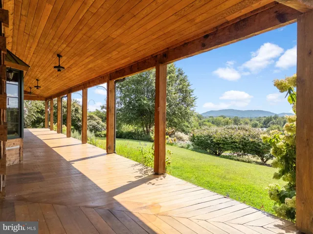 The pastoral setting of open hayfields offers possibilities— future equestrian facilities, gardens or hunting in both field and mountainside. The equipment barn (4 enclosed bays, 3 open) with concrete floor accommodates tractors, 4-wheelers, tools and equipment. Inside, a commercial kitchen, bathrooms, walk-in cooler and freezer. The large woodworking shop is a craftsman’s dream–fully conditioned is ready for projects. Fun fact: the bar for Flint Hill’s beloved Griffin Tavern was crafted here.