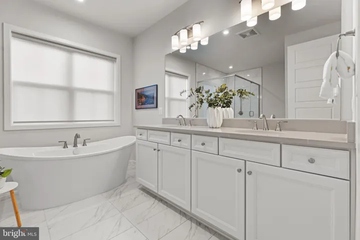 Welcome to this stunning three-year-young home, offering the perfect blend of style and comfort in a highly sought-after community. From the moment you step inside this 5-bedroom, 3.5-bath residence, you’ll notice premium upgrades throughout that set this property apart. Enter through the covered porch into the main level, where beautiful 9-inch LVP flooring flows seamlessly. To your left, a convenient home office features custom built-in bookshelves with glass doors. The spacious living and dining areas connect effortlessly to the showpiece open-concept kitchen. Designed for both beauty and function, the gourmet kitchen boasts a waterfall quartz island, ceiling-height backsplash, soft-close cabinetry with crown molding, and upgraded KitchenAid appliances. The backyard is a rare gem, offering a grassy area not often found in the neighborhood. It’s the perfect setting for entertaining or relaxing in the private hot tub. Upstairs, the primary suite is a true retreat with a tray ceiling and spa-inspired bath featuring a freestanding soaking tub and large walk-in shower. The expansive walk-in closet is outfitted with a customized Elfa system, combining luxury with practicality. The finished basement adds even more living space with a full bedroom, full bath, and a versatile recreation area filled with natural light, thanks to two egress windows. Modern conveniences abound, including smart home upgrades such as a Tesla charger, Ring alarm system, Leviton switches, Rinnai instant hot water circulation, and upgraded lighting throughout. Neutral paint and upgraded carpeting complete the home’s timeless design. Living in Brambleton means enjoying so much more than a beautiful home, it’s a lifestyle. The high school is just across the street, and the community offers five pools, tot lots, tennis and volleyball courts, ball fields, and a one-mile neighborhood trail. Nearby Hanson Park provides extensive recreational amenities, while Brambleton Town Center features dining, shopping, entertainment, and a weekly farmers market. With quick access to the Silver Line Metro, Dulles International Airport, and the Dulles Greenway, convenience is always at your doorstep. Move-in ready and better than new, this home truly has it all.