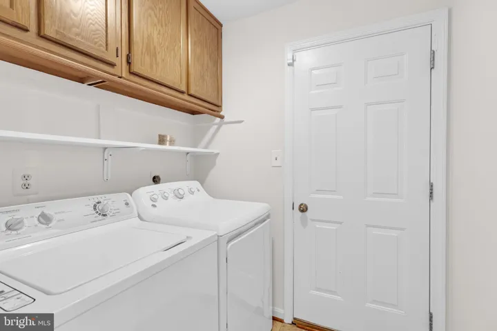 Convenient main-level laundry room with built-in cabinetry.