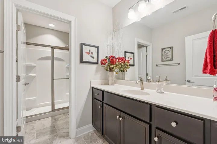 The main level offers three bedrooms, thoughtfully arranged for convenience and comfort. The primary suite is a true retreat, with a luxury bathroom that includes a double vanity, soaking tub, frameless glass shower, and a spacious walk-in closet. A modern shiplap accent wall adds character and style to the suite. Two additional bedrooms share a well-appointed full bathroom, making the main level ideal for guests or multi-generational living. A dedicated laundry room on this level adds everyday ease.