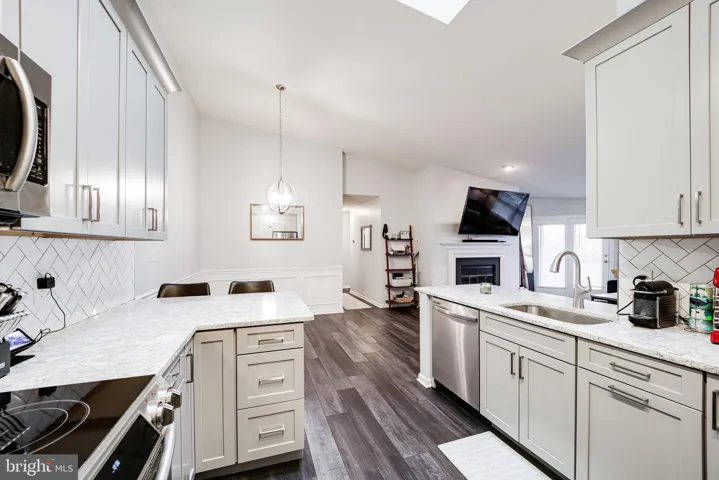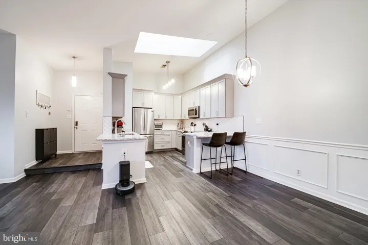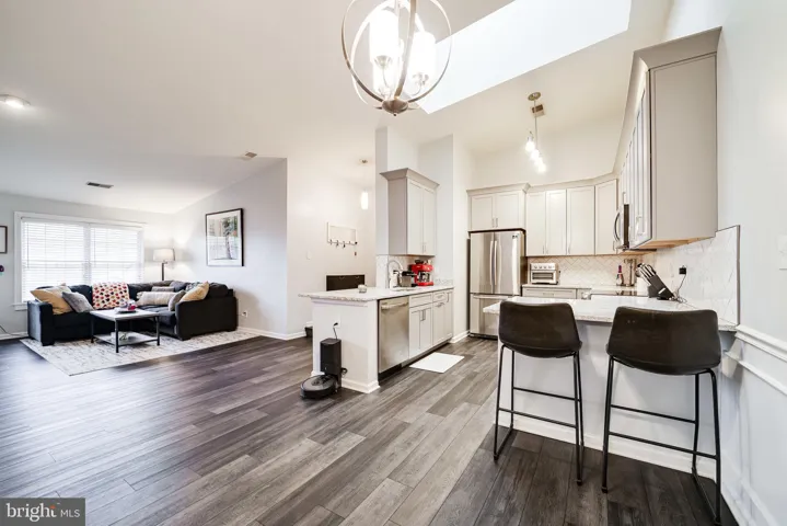 This stunning, top floor 2 bedroom, 2 bathroom Kingstowne Condo is the home you’ve been looking for! A beautifully renovated kitchen with sleek, stainless steel appliances, granite countertops, subway tile backsplash and natural sunlight coming in from the skylight makes this a chef’s dream kitchen! The kitchen opens to an open concept dining and living space with sun filled windows, balcony door and beautiful new flooring that runs throughout. The dining area has beautiful molding, giving the space a modern and sophisticated feel that matches it’s overall tone. In the owner’s suite, the open large space flows to the closet and spacious bathroom that has a stunning double vanity and glass shower with its own skylight. The additional bedroom, just off of the main living room space, has its own access to the balcony and a hall bathroom that’s easily accessible for guests. Kingstowne and Springfield are 5 and 8 minutes away respectively with all of its retail shopping, restaurants, grocery stores, and more available. I-95 and 495 are just a short drive away.