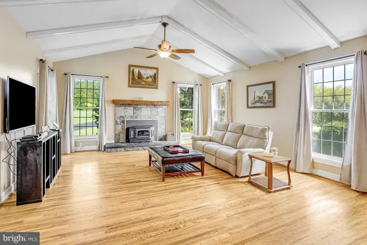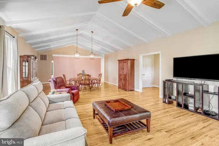 Welcome to this exceptional custom-built ranch/rambler in the desirable Fox Chase community of Spotsylvania. Situated on a beautifully landscaped private lot, this home offers the perfect blend of comfort, functionality, and thoughtful design. Step inside to find a spacious, light-filled main level featuring gleaming hardwood floors, vaulted ceilings with exposed wood beams, and elegant crown molding throughout. The heart of the home is the gourmet kitchen, complete with stainless steel appliances, granite countertops, a large center island, ceramic tile flooring, and gas cooking—ideal for home chefs and entertaining alike. The adjoining living and dining areas provide a seamless flow, enhanced by recessed lighting and architectural details.