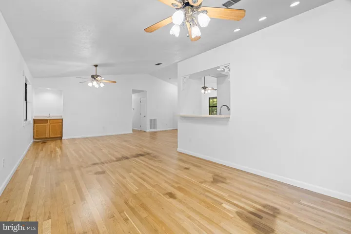 Inside, soaring cathedral ceilings create a sense of openness, while freshly painted walls and gleaming refinished hardwood floors set a warm, inviting tone. Brand-new carpeting in the secondary bedrooms ensures comfort underfoot.