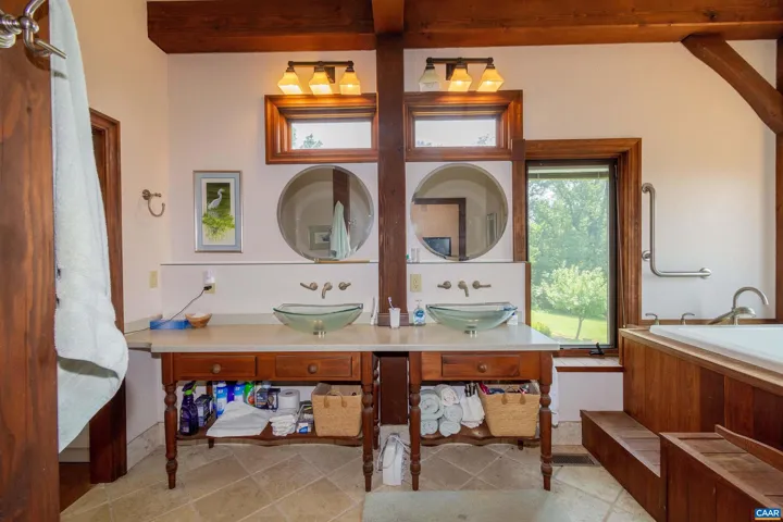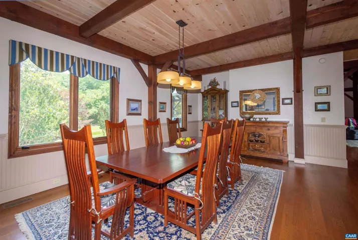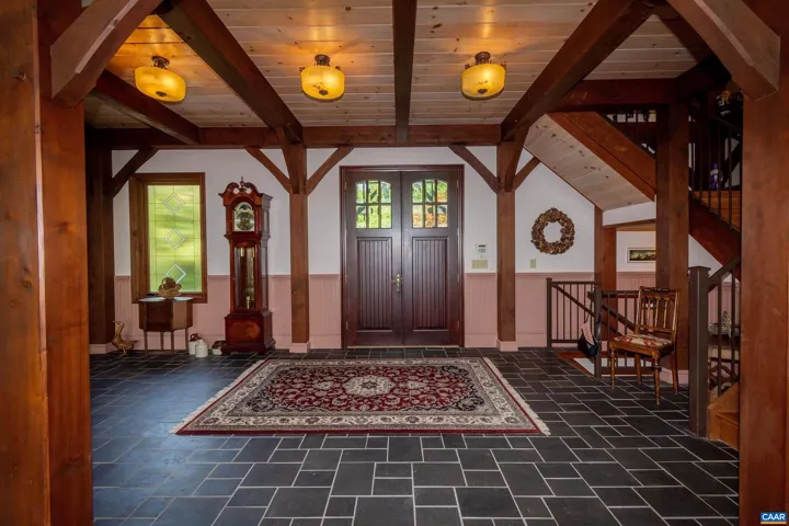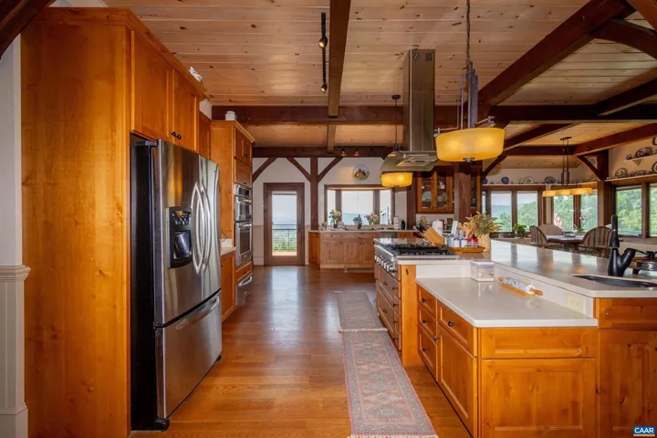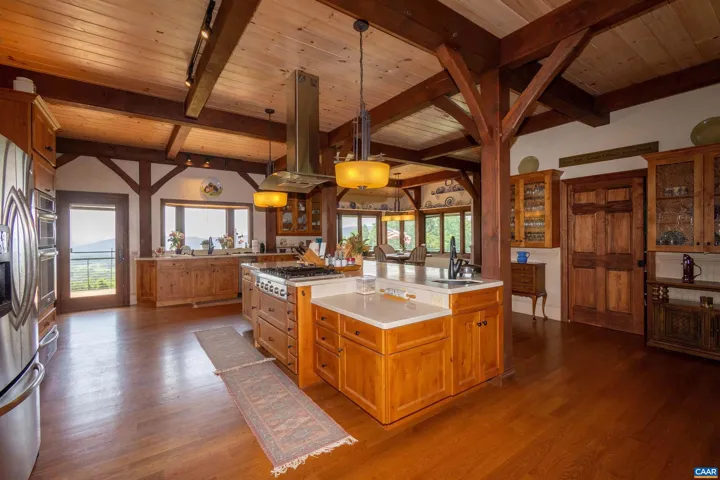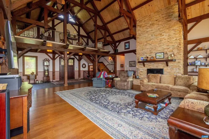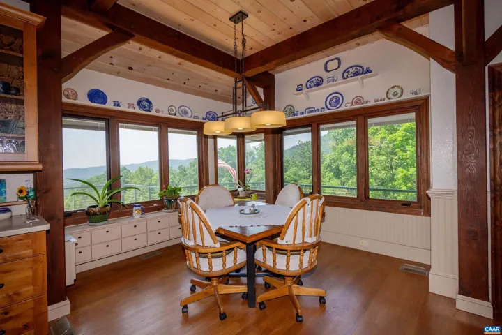 Your weekend getaway and when you can?t come down it?s your short term rental! Tucked away on a peaceful mountainside, this stunning timber frame home offers panoramic views across four southern counties. On July 4th, enjoy fireworks in three directions from your private deck. With over 8,000 sq ft of living space, it blends rustic charm with modern convenience. Though secluded, it?s close to hospitals, schools, restaurants, and entertainment. Outdoor enthusiasts will love nearby river fishing, hiking trails, and quick access to the Blue Ridge Parkway. Inside are 3 bedrooms with private baths and outdoor access, a loft, office, craft room, workshop, and rec room. There are 3 full and 3 half baths, plus 3 fireplaces. Hardwood floors throughout. Soaring 50-ft ceiling highlight the great room. Enjoy year-round outdoor living with a screened porch, deck, and patio. Extras include a dumbwaiter, generator, wine cellar, geothermal HVAC, intercom, built-in speakers, security system, and driveway alarm. Includes 1-car attached and 3-car detached garages, barn, and lush landscaping. Move in and enjoy mountain living immediately.,Cherry Cabinets,Granite Counter,Fireplace in Family Room,Fireplace in Living Room,Fireplace in Master Bedroom