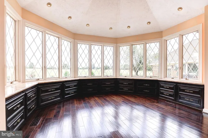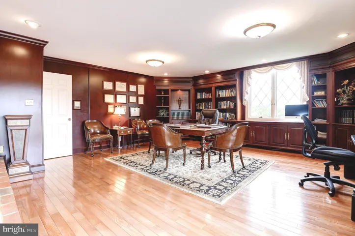 On the opposite side of the home, a full-sized library or executive office awaits, complete with built-in bookshelves, a full fireplace, and access to the pool—an inspiring space for work, reading, or quiet reflection. Adjacent is a guest suite that is both enormous and cozy, offering a private retreat with ensuite bath and stunning pond views.
