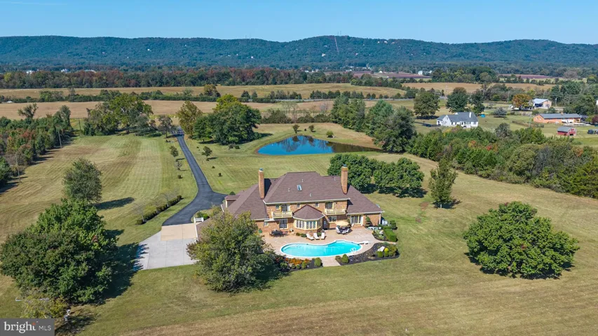 Truly extraordinary and rarely available. Set on 19.9 breathtaking acres in the Log Mill Road area of Prince William County, this all-brick Tudor-style estate is a rare jewel surrounded by open fields and framed by sweeping views of Bull Run Mountain. To the front, a stocked pond and gently sloping meadows enhance the setting, while to the rear, a Caribbean-blue pool and expansive outdoor entertaining area create a private enclave perfect for family gatherings, pool parties, and Sunday brunches by the pool. A tree-lined driveway leads to a circular approach and introduces the home with presence and elegance. This property is exceptional not only for its location and scale, but also because it has no HOA and no conservation easements, providing total freedom for your lifestyle and future plans.