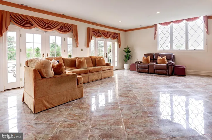 The entertainment room is a true showstopper: huge in scale with marble floors, direct pool access, a full bar, and a full sports bar that overlooks the TV—perfect for watching the Masters, the Super Bowl, or your favorite Netflix series. This space is designed for hours of joy, whether hosting Sunday night movies, game-day celebrations, or large-scale gatherings. Its scale feels grand, yet the layout allows for a warm, inviting atmosphere where friends and family can relax and enjoy every moment.
