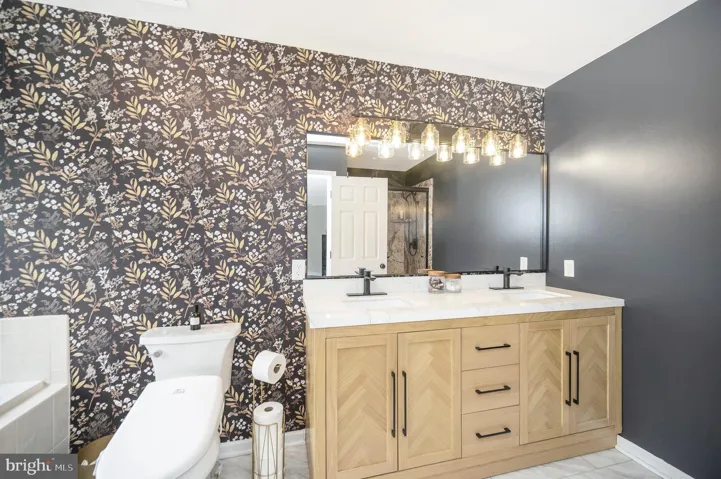 The heart of the home is a chef’s dream, showcasing a fully upgraded kitchen with sleek new counters, a stylish backsplash, and custom cabinetry that exudes quality. A state-of-the-art gourmet range and hood, paired with an upgraded kitchen island, create a space as functional as it is beautiful—perfect for gatherings or entertaining guests. All bathrooms have undergone major renovations, featuring high-end finishes that elevate everyday living with a touch of spa-like luxury.
