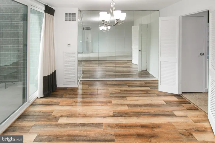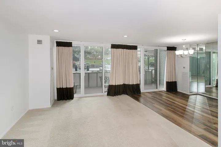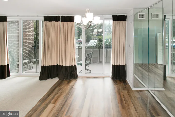 Tucked securely away on the Lobby level, this amazing home offers an elevator-free and steps-free lifestyle. Ingress and Egress is with great ease, so come on home and enjoy this convenient life style. This large one bedroom home features 1,086 sf of well-planned and spacious living. The rooms are generously sized, allowing for comfort, whether relaxing in solitude, or entertaining family and friends. Upon entering the home the Foyer acts as the “separation” space between the entertainment side of the condo and the Bedroom and Baths. Tuck your umbrella and shoes into the Foyer closet and turn right to enter the very welcoming and spacious 24 x 12 carpeted Living Room. Around the corner you find the 12 x 10 Dining Room with mirrored wall and LVP flooring. The DR/LR wall of light is courtesy of recently installed Thompson Creek sliding glass doors. The doors open to a full length Terrace, affording refreshing green space, perfect for recharging one’s batteries. Custom-lined draperies adorn the entire wall of windows, allowing for maximum privacy. The updated Kitchen is entered through louvered double doors from the Dining Room or from the Living Room. The Kitchen features cherry cabinets topped by Granite countertops. Tiled back splash enhances and compliments the Kitchen. Stainless and black appliances are replacements and there is a recent ceiling fan/light. A full size GE washer and dryer fill a nook in the Kitchen. All this, and there is still plenty of space for a table or Baker’s rack. Back to the Foyer and turning left, one finds a Half-bath and beyond is the recently remodeled full bath with a generous sized WALK-IN SHOWER featuring a built-in-bench. The over-sized shower is wrapped floor-to-ceiling and offers shower head options. Finally, one arrives in the large 17 x 11 Bedroom! A wall of closets are on your left and Thompson Creek large windows, with screen and blinds, are straight ahead. Space allows for a sitting area and small work desk within the spacious carpeted Bedroom. A ceiling fan with light adds to one’s comfort. My client says she treasured the well- managed and maintained building and found the peaceful location to offer a good deal of tranquility. She hopes the new owner will enjoy that contentment, too! Want more contentment: just activate the Brinks security system. It isn’t activated, but is an option. This great-value home is move-in ready and has a low condo fee of $702 which includes all the utilities except electric, phone and cable. Templeton is well managed with secure access and on-site management Monday – Friday. The amenities include a party room, an outdoor pool with a large lounging area and bathhouse, basketball court, tennis court, tot lot, large terraces for picnics and grilling, extra storage, plus an enormous covered entertainment area. The property is beautifully landscaped with manicured grounds. This location provides convenience in commuting by bus, Metro or your personal vehicle. Located inside the Beltway, just off I-395 and minutes to the Van Dorn Metro, the “Coming Soon” INOVA complex, as well as I-395 and 495. Hop into Old Town Alexandria or Washington, D.C. in about twenty minutes and it is only slightly more time to reach Reagan National Airport. Come home to turn-key living at the Templeton!