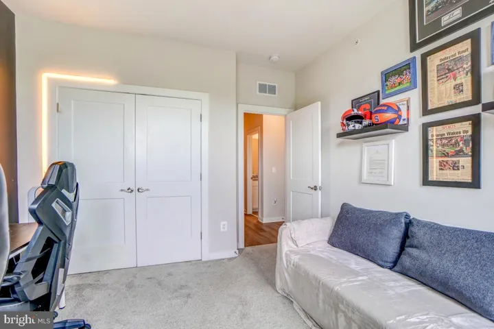 Back on the market because of no fault of the seller. Welcome to this beautiful upper level end unit townhome style condo with one car garage. No need to wait for the builder this home is move in ready. This 2 year young home is ideally located just next to the VRE in Manassas park. Walking distance to shopping, train, parks, route 28, commuter lots and more. Special touches and custom accent walls make this home unique. The open floor plan gives the main level kitchen, family room and dining area lots of space to move around. The gourmet kitchen is well equipped, featuring quartz countertops, a spacious center island, stainless steel appliances, double pantry and 42″cabinets. There is a balcony off the family to enjoy those long summer evenings and cool fall nights. The upper level you will find spacious bedrooms, laundry room, primary suite with custom accent wall, primary bath and large walk-in closet. This is one you won’t want to miss for sure.
