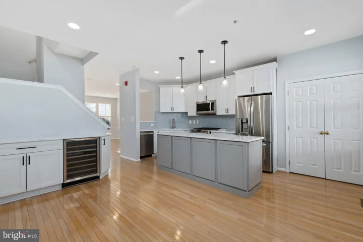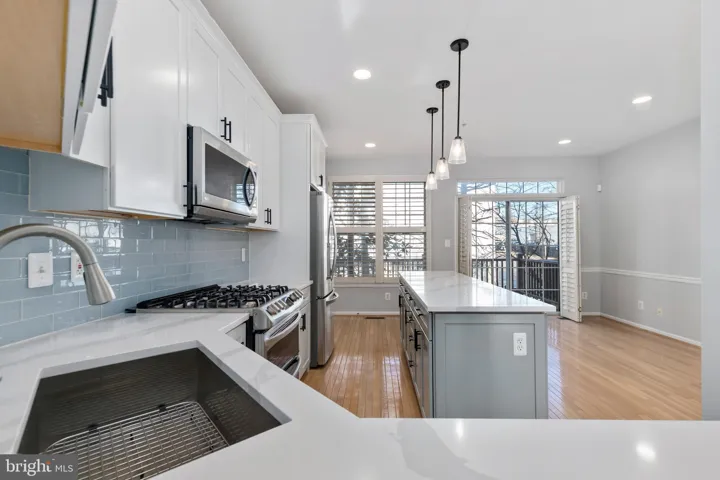 Gorgeous Gatsby model!Renovated kitchen with added cabinetry and extended kitchen island, quartz countertops, stainless steel appliances. Light hardwoods in main level and upgraded carpets throughout we just steam cleaned. Entire house was freshly painted neutral color in 2021. Trex deck off kitchen and fenced patio off rec. room. New windows and glass doors (2023). Plantation shutters throughout. Third level with 2 spacious bedrooms and en-suite full baths. Entire 4th level is a primary bedroom with full bath and walk in closet.