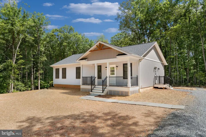 Spectacular Custom Built 3 Bedroom, 2 Bath Rambler on 5.36 acres!! Eye catching vertical Board & batten siding, black frame windows, and so much more! Relax on the covered front porch and invite your friends to grill out on the Trex deck that spans the rear of the home. Kitchen features a breakfast bar and pantry, and the Breakfast Room offers plenty of table space! Spacious Primary Suite offers walk-in closet, private bath with double vanity. Rear deck can be accessed via both the Breakfast area and Primary Suite! Full, unfinished walk-out basement with rough-in for future bathroom. It’s a perfect canvas for your future rec room vision, or plenty of storage space!! Builder takes pride in using top quality materials and attention to details from start to finish! GAF lifetime architectural shingles, double-hung low-E black vinyl tilt-in windows, premium grade vertical board & batten siding, Trane high efficiency heat pump, Trex decking.