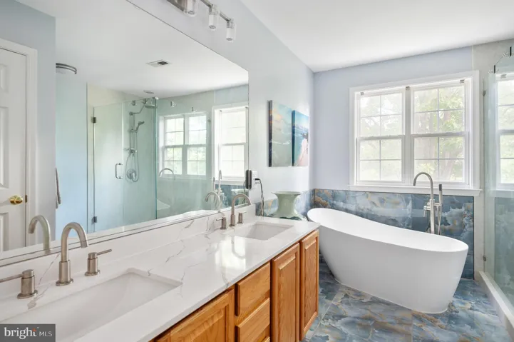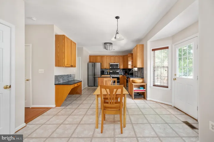 Welcome to this stunning home in the highly sought-after Austin Ridge subdivision, perfectly situated on a cul-de-sac. This property boasts fantastic curb appeal with a welcoming covered front porch and a new roof installed in 2024. Inside, you’ll find a freshly painted, neutral interior and newer carpet on the upper level and dining room. The kitchen is a chef’s delight, featuring newer stainless steel appliances, granite countertops, and a convenient island. It opens to a cozy family room with a gas fireplace and has direct access to the rear deck, perfect for indoor-outdoor living. The upper level offers five spacious bedrooms and two full bathrooms. The spacious primary bedroom is a true retreat, complete with two walk-in closets and a beautifully remodeled ensuite bathroom. This luxurious space includes a double vanity, a separate soaking tub, a walk-in shower, and radiant floor heating for ultimate comfort. The finished, walk-out basement provides even more flexible living space. It includes a full bathroom, two storage rooms, 6th bedroom with a walk-in closet, and a recreation room with a sliding door that leads out to the backyard. Don’t miss the murphy bed located in the rec room! The outdoor space is just as impressive. Enjoy a level, fenced backyard, a deck with a built-in covered pergola, a storage shed, and an irrigation system to keep your lawn looking pristine. A two-car garage completes this exceptional home. Commuting is a breeze from this location, with easy access to I-95. The property is less than 5 miles from two commuter lot options as well as the Brooke VRE Station. This home is a perfect blend of comfort, style, and practicality. Don’t miss your chance to see it!