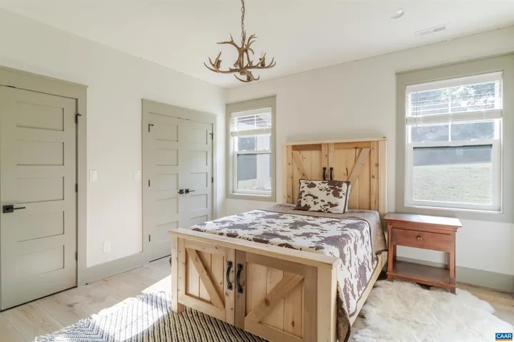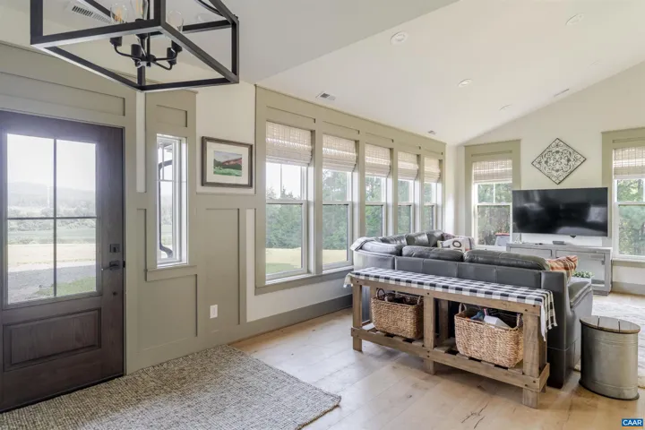 This custom built newer home sits atop a ridge with beautiful views of the South-West mountains. The 3200 sq ft home boast a modern layout consisting of a large family/kitchen space with fireplace, and vaulted ceiling. The home’s 3 bedrooms, including the primary are all located on the ground floor. Also on the main floor are two full baths, and one half bath The 3+ bay attached garage has access into the home through the mudroom. Above the garage is a large finished space with a full bathroom. The land is mostly open pasture, and is all fenced for livestock, with automatic waterers. The land is further enhanced by a pole barn. Conveniently located between Orange and Gordonsville, yet very private.