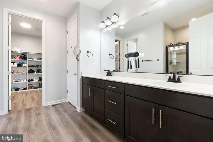 The primary suite is a private retreat with a beautifully upgraded bathroom and a massive walk-in closet with custom built-in storage.