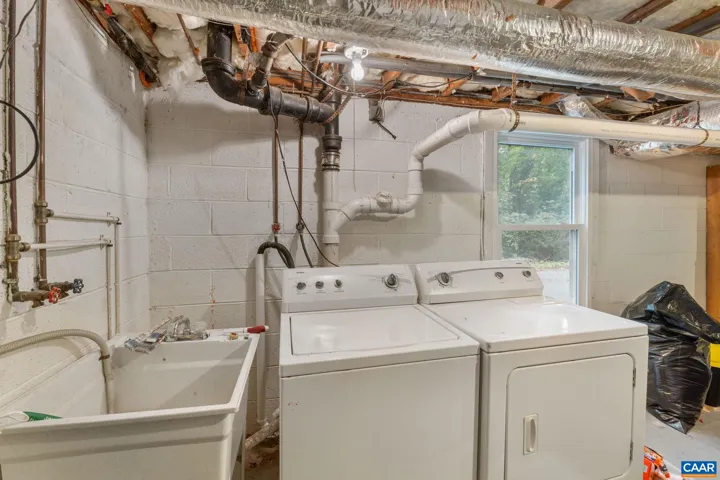 Charming and solidly built 1950s brick home on a spacious 0.5-acre lot in a prime Charlottesville location. Hardwood floors run throughout the main level and continue into a thoughtfully designed half-story addition featuring a modern primary suite with walk-in closet and a spacious en suite bath?complete with soaking tub, dual vanities, and tiled shower. The main level includes three additional bedrooms, one of which was the original primary with its own attached bath. The living room offers a decorative fireplace ready for a gas insert framed by custom built-ins and the kitchen has new porcelain tile and walks out to a side porch. The finished basement features a wood-burning fireplace, full height windows, and new LVP flooring, adding flexibility for recreation or work-from-home space. Recent updates include roof (2021), HVAC coil (2020), tankless gas water heater (2012), garage/basement windows (2012). LEAP Certified,Painted Cabinets,Solid Surface Counter,Wood Cabinets,Fireplace in Basement,Fireplace in Living Room