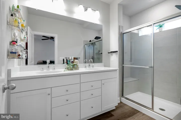 The owner’s suite provides a true retreat with a walk-in closet and a spa-like en-suite bath featuring upgraded tile, quartz counters, and a double vanity. Two additional bedrooms, a full bath, and a laundry room complete the upper level.