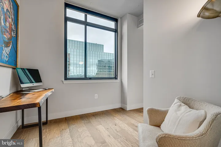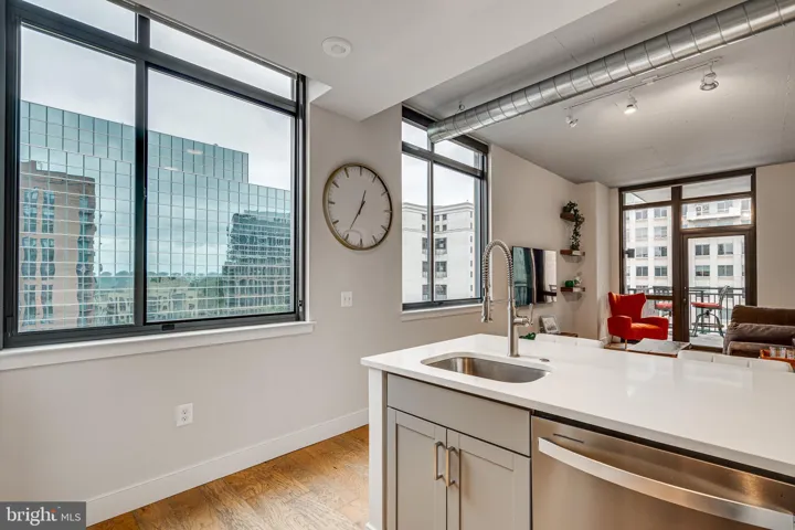 Constructed in 2021, ‘2000 Clarendon’ is an 87 unit community conveniently located just minutes from DC nestled in the urban Courthouse neighborhood. With just steps to the Orange and Silver line, this location is a commuter’s dream to the city. Upon entry to this desirable corner unit, you are greeted by a long and inviting hallway that can serve as your art gallery. You will then be guided toward the open concept kitchen and living area where 10 ft ceilings, with exposed duct work, and large southwest facing windows bathe the unit in abundant sunlight. Featuring solid, hickory, wide plank floors throughout, quartz countertops, and stainless steel appliances, this 1 bedroom 1.5 bathroom + den condominium has it all; comfort, convenience, and modernity. Completing this unit is an in-unit washer/dryer, gas stove, custom shades, and large balcony fit for al-fresco dining. Amenities include a corner reserved garage parking space, fitness center, mailroom, pool, rooftop clubroom and deck with unobstructed views of Washington’s skyline perfect for that 4th of July celebration and more. Welcome to ‘2000 Clarendon’!