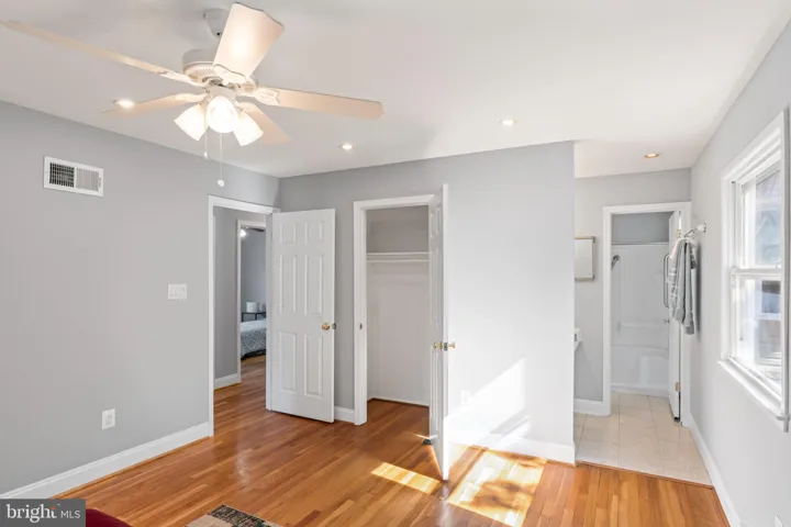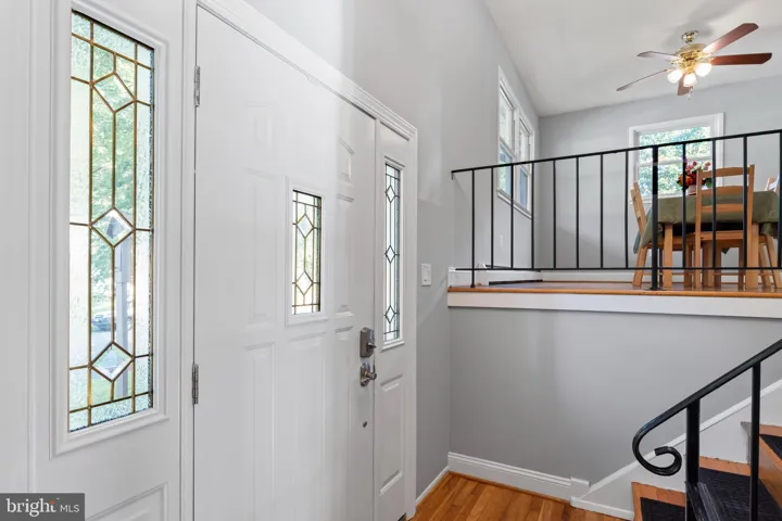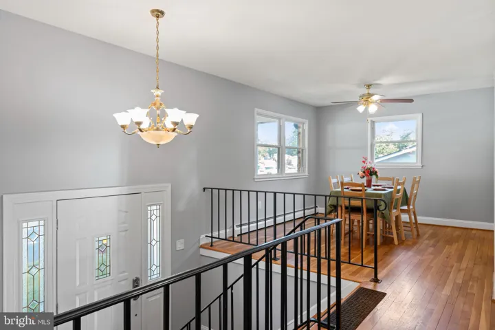 The main level features a separate dining room and living room with hardwood floors, ceiling fans, and abundant natural light. Three bedrooms on this level are generously sized with hardwood floors and large windows. The primary suite includes a handicap-accessible shower stall, separate vanity, abundant natural light, and beautiful hardwood floors.