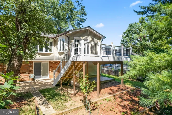 The exterior features a roof replacement in 2018, an HVAC unit and thermostat (2023), and beautiful green spaces throughout. The front yard features concrete steps with a railing, a concrete ramp, and a welcoming porch. The fenced-in backyard provides two access doors to the front yard. A deck with solar lights and an illuminated staircase (2021) offers the perfect outdoor retreat. The front yard features a concrete ramp along steps in front of the house, leading to the driveway, making it easy to maneuver packages/furniture, and deliveries. In 2023, new LeafGuard gutters were installed all around the house. Matching green front door and shutters and brown in the back to match the deck.