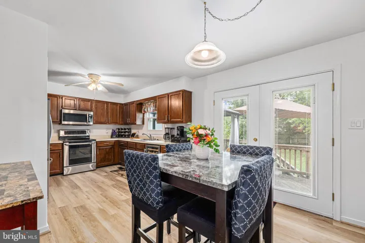 Entertainer’s Paradise: The main level beckons with a family room featuring a cozy wood-burning fireplace that flows seamlessly into the dining area and a kitchen with stainless steel appliances and pantry. Step out to the deck with a hard-top gazebo, perfect for alfresco dining, and descend to the paved patio and large wooded backyard.