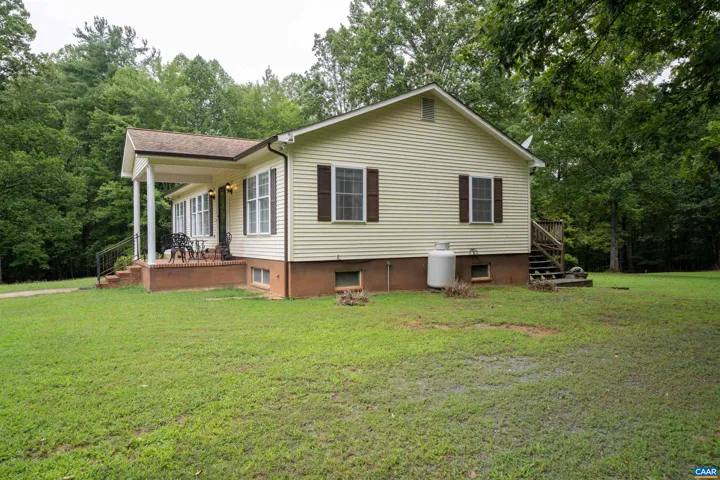 LOCATION, LOCATION, LOCATION! Ideally situated between Charlottesville and Richmond?and just 5 miles from Rt. 64?this property offers the perfect blend of country living and city convenience. Built in 1990 and perfectly situated on 26 beautiful acres teeming with wildlife. A paved circular driveway leads you to multiple outbuildings, including a spacious 30×48 detached building and an attached carport?perfect for hobbies, storage, or a workshop. Step onto the charming front porch and enter a warm, inviting interior featuring hardwood floors, and a traditional layout with 3 bedrooms, 2 full bathrooms, a kitchen and dining room, plus additional finished space on the lower level?ideal for a family room, home office, or guest area with a 3rd full bath. This home has solid bones and endless potential. Home is in need of some TLC and is being sold “As is”. Home inspections will be for informational purposes only. Whether you’re dreaming of a peaceful homestead, a weekend getaway, or a property with room to grow, this is a rare chance to own a slice of Virginia countryside.,Wood Cabinets,Fireplace in Basement