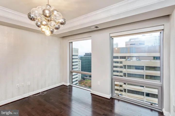 Luxury living meets modern sophistication at The Waterview. Perched on the 17th floor, this stunning 2 bedroom, 2.5 bath residence offers sweeping views of Washington, D.C. through its sunlit living spaces. The home is thoughtfully appointed with hardwood flooring throughout, custom upgrades, and a rare fireplace—a warm focal point in an elegant contemporary setting.
