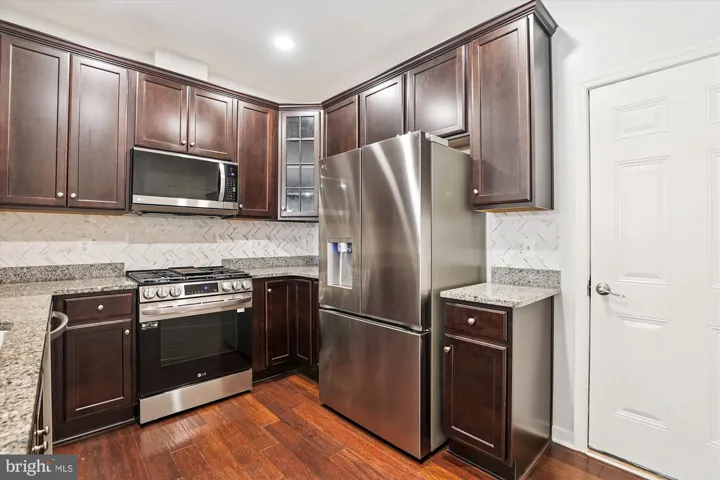 Recent updates include high-end LG stainless steel appliances (fall of 2023), plush carpet in all bedrooms and stairs (2024), luxury vinyl plank flooring in the upper hallway (2024), and LED recessed lighting in the main living area and upper hallway (2024). The kitchen features granite countertops, a stylish backsplash, 42” cabinetry with a lazy Susan, a spacious pantry, and appliances – 5-burner gas cooktop, smart French door refrigerator with four ice types, Microwave and 3-rack dishwasher. ***